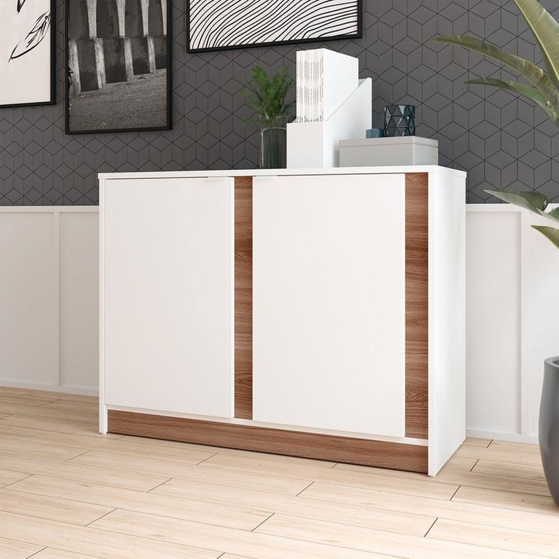 Armário para Escritório Baixo 2 Portas 2 Prateleiras MDP BRV Branco/Castanho