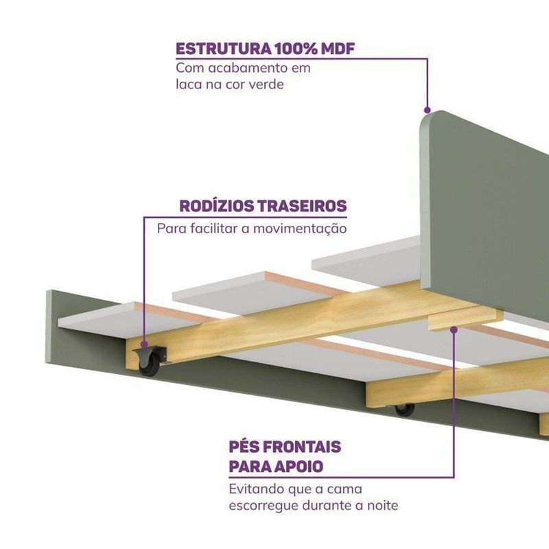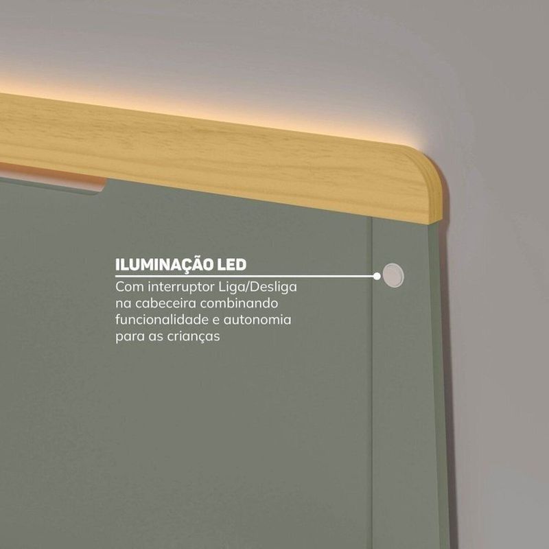 Bicama Infantil com Led e Grades de Proteção Petit Casatema Verde/Mel