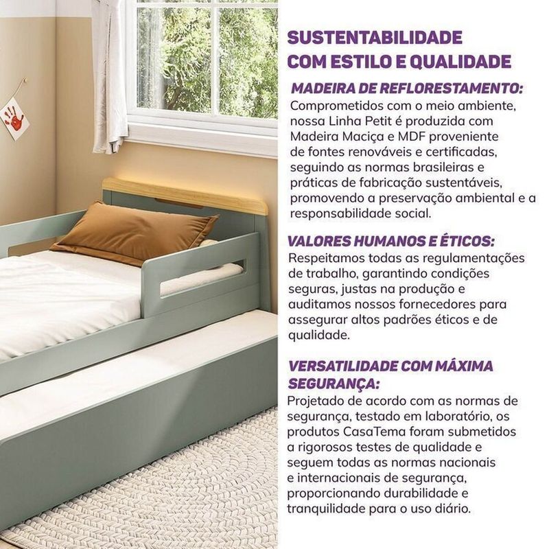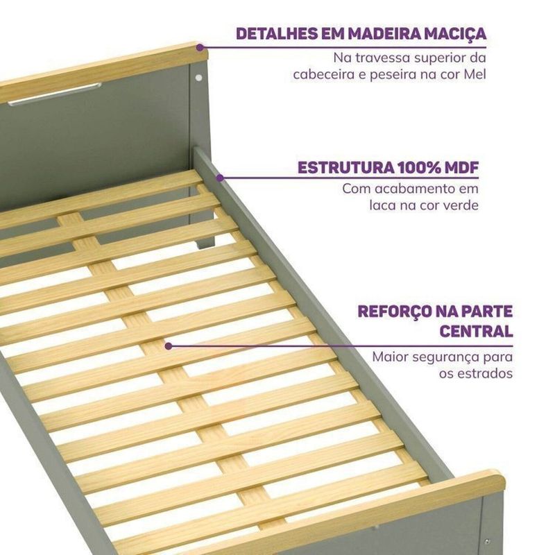 InfantilCamaBicama InfantilBicama Infantil com Led e Grades de Proteção Petit Casatema Verde/Mel