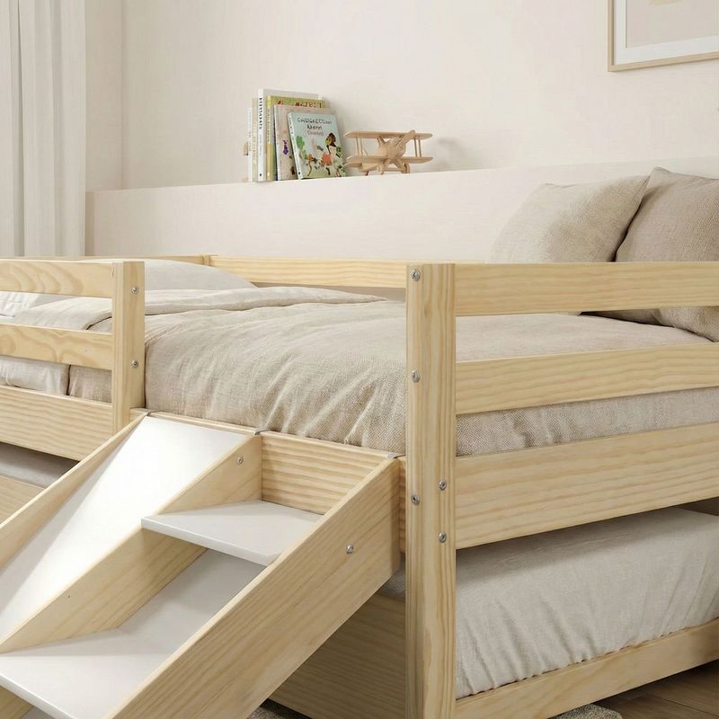 Bicama Solteiro Infantil Prime com Kit Escadinha e Escorrega Casatema Natural/Branco