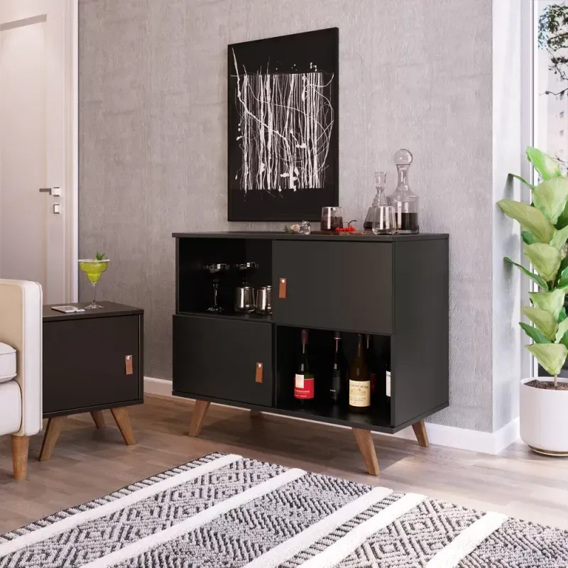 Buffet Aparador 2 Portas 2 Nichos Play Preto/Garapa