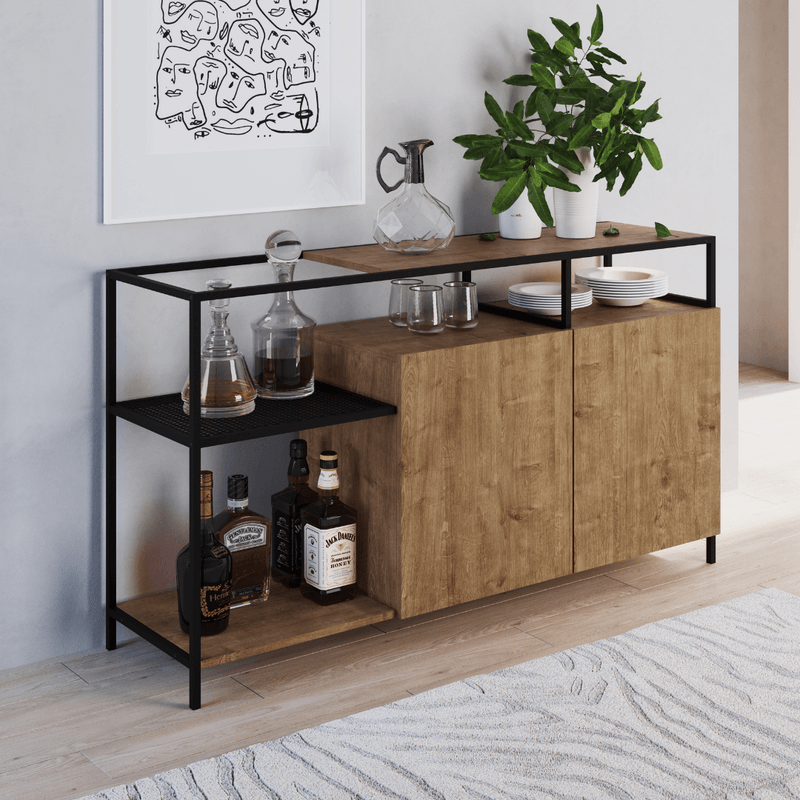 BuffetBuffet Aparador Bar Industrial Retrô 2 Portas 2 Nichos Madeira/Aço 135cm York Vermont/Preto
