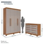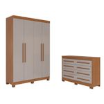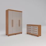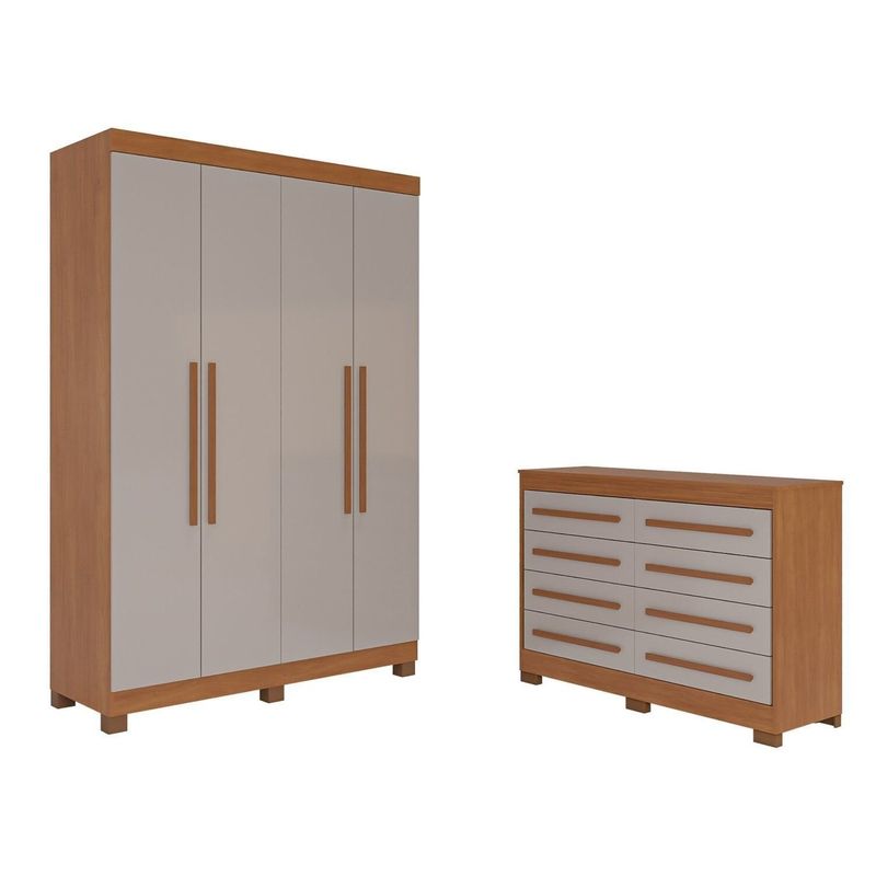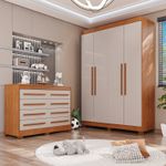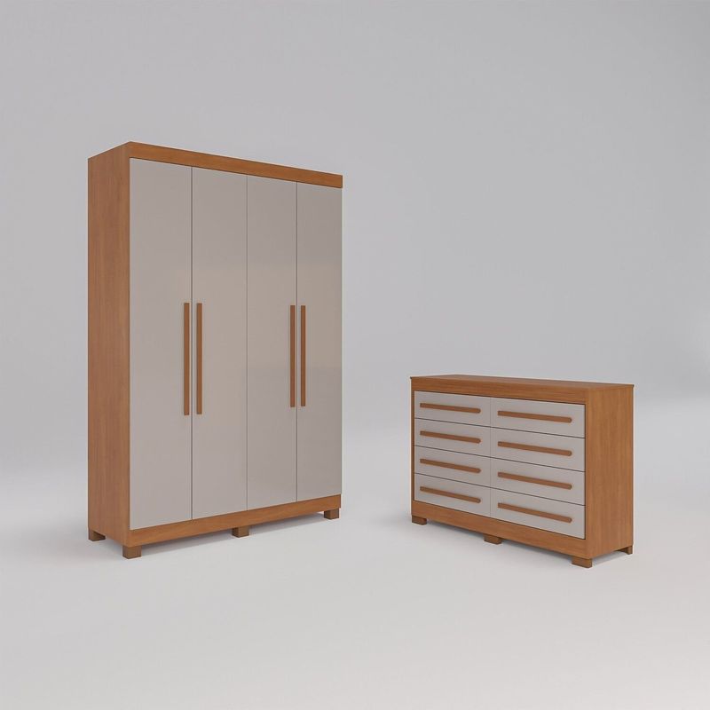Conjunto Quarto Infantil Guarda-Roupa 4 Portas 3 Gavetas e Cômoda 8 Gavetas Alice Espresso Móveis Cinamomo / Off White