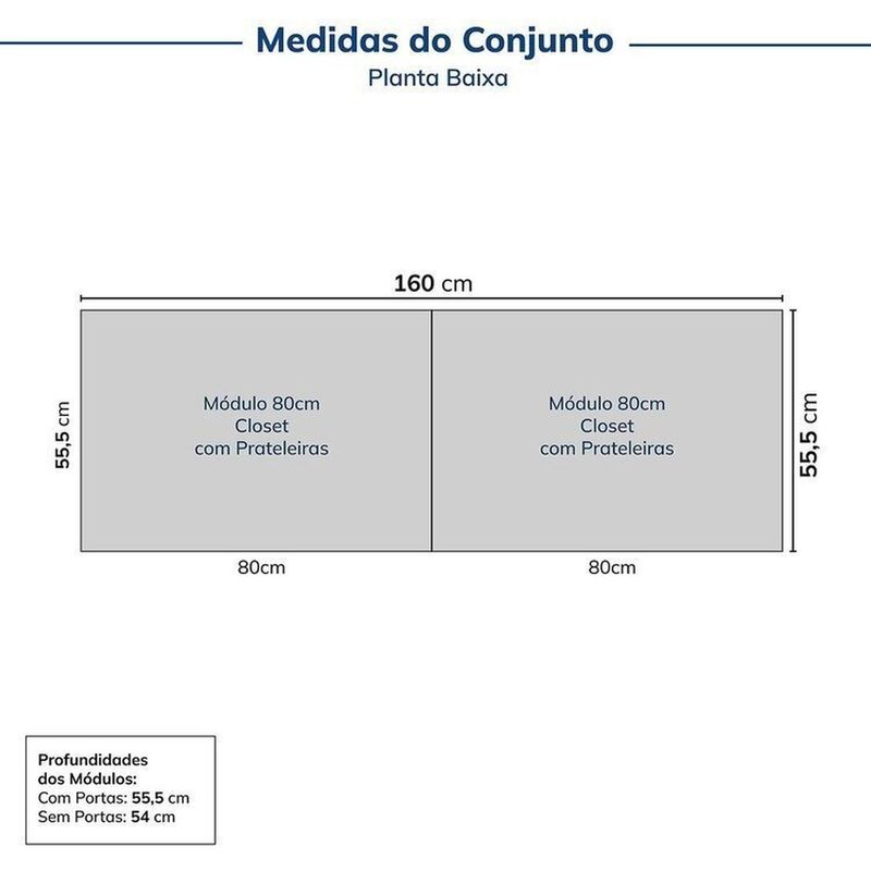 Guarda-roupa Modulado 2 Peças sem Portas Jade CabeCasa MadeiraMadeira Cinza Urbano