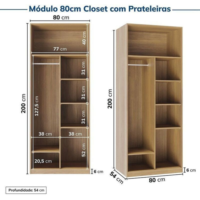 Guarda-roupa Modulado 2 Peças sem Portas Jade CabeCasa MadeiraOriginals Avelã