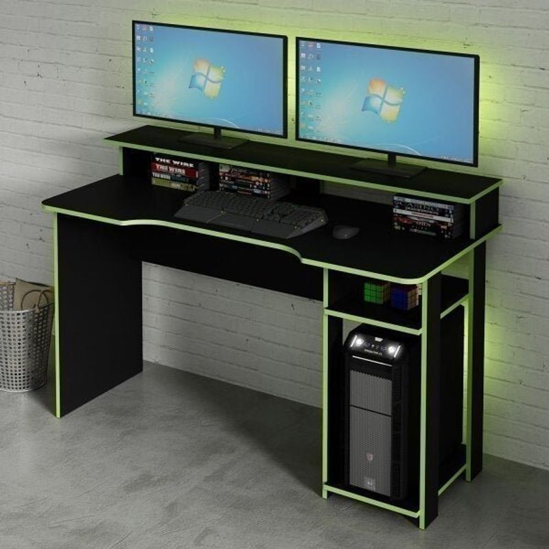 Mesa Gamer Escrivaninha com Porta 136cm CPU Preto/Verde