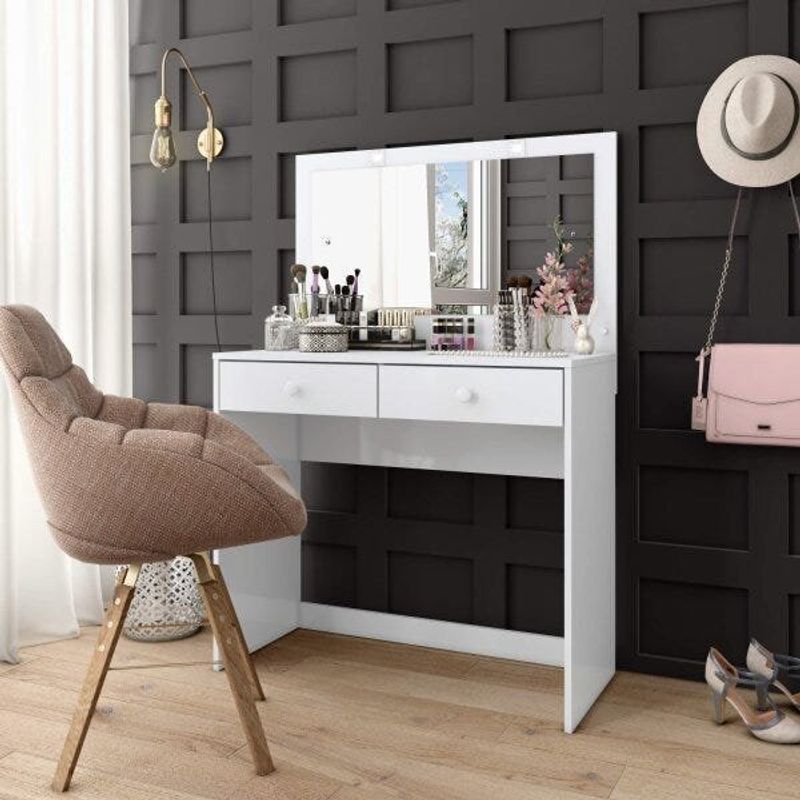 Penteadeira 2 Gavetas com Espelho Thais Espresso Móveis Branco