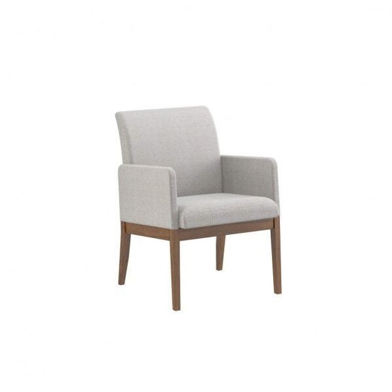 Poltrona Madeira Maciça Claudia Nogueira Acetinado/Algodão Bege Mescla