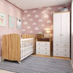 Quarto de Bebê Completo com Berço Americano Guarda-roupa e Cômoda 100% Mdf Teka Espresso Móveis Branco Brilho/Amêndoa