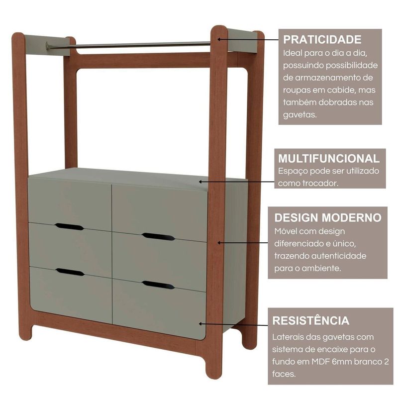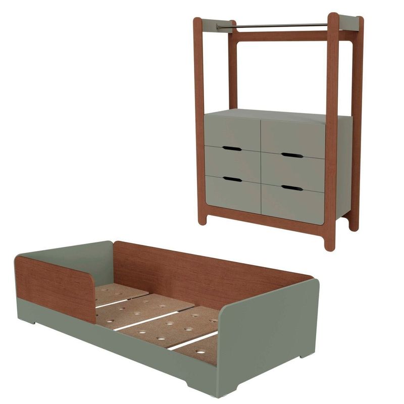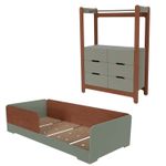 Quarto Infantil Completo Guarda-Roupa Closet e Cama Solteiro Montessoriana 100% MDF Olivia e Mark Verti/ Castanho