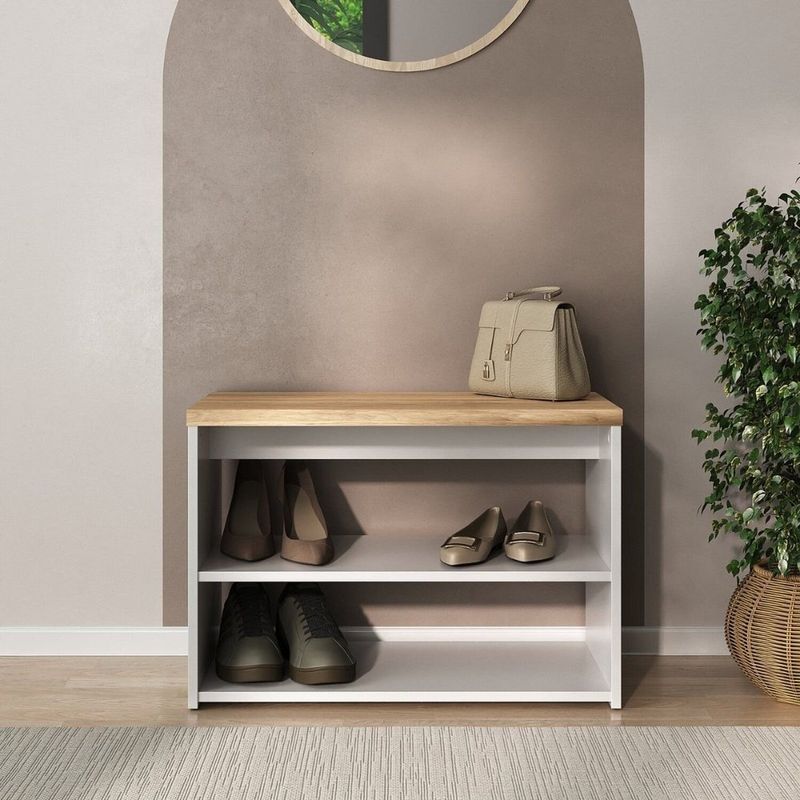 Sapateira Banco Safira para Hall de Entrada Quarto com 2 Nichos Branco